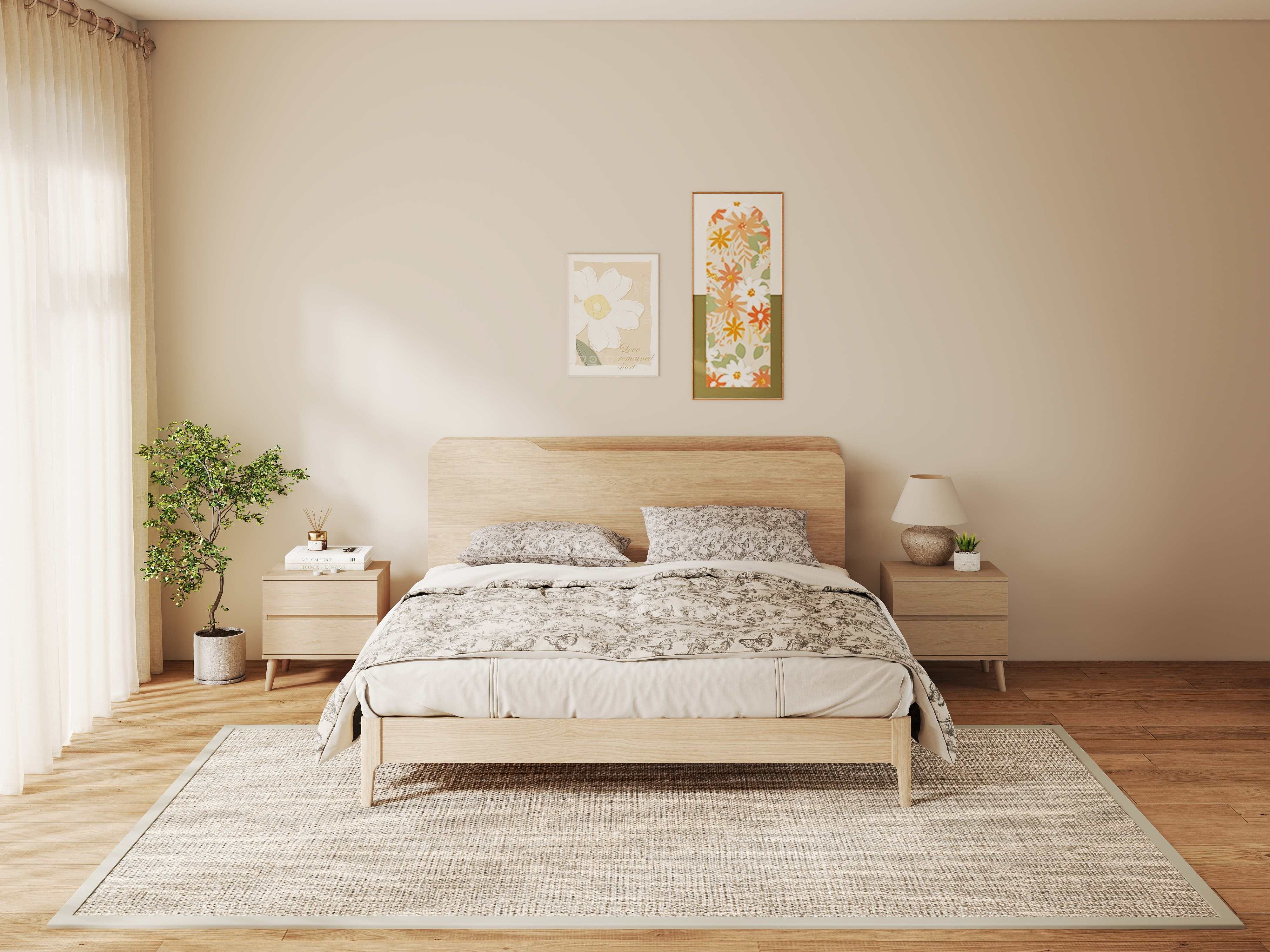 This wooden bed is crafted from high-quality solid wood, ensuring durability and long-lasting use. Its natural wood grain finish adds warmth and elegance to any bedroom. The sturdy construction provides excellent support for a comfortable night's sleep. With a simple yet timeless design, this wooden bed seamlessly fits into various interior styles, from classic to modern.