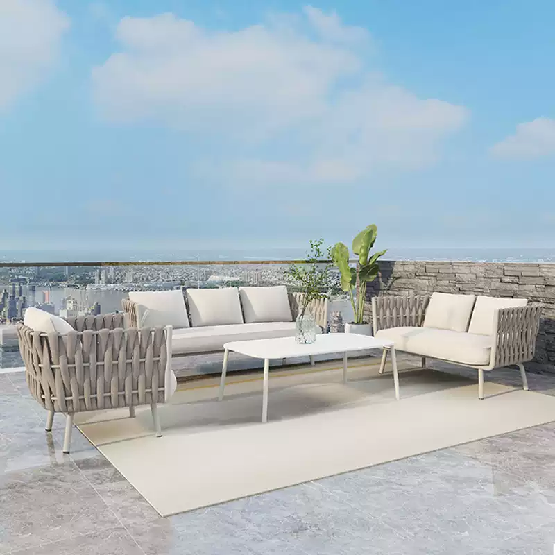 This outdoor sofa is crafted from high-quality weather-resistant materials, making it waterproof and UV-resistant for all types of outdoor environments. Featuring spacious cushions and a soft backrest, it provides exceptional comfort for relaxation. Its modern minimalist design effortlessly blends into gardens, patios, or balconies, creating a cozy and inviting atmosphere.