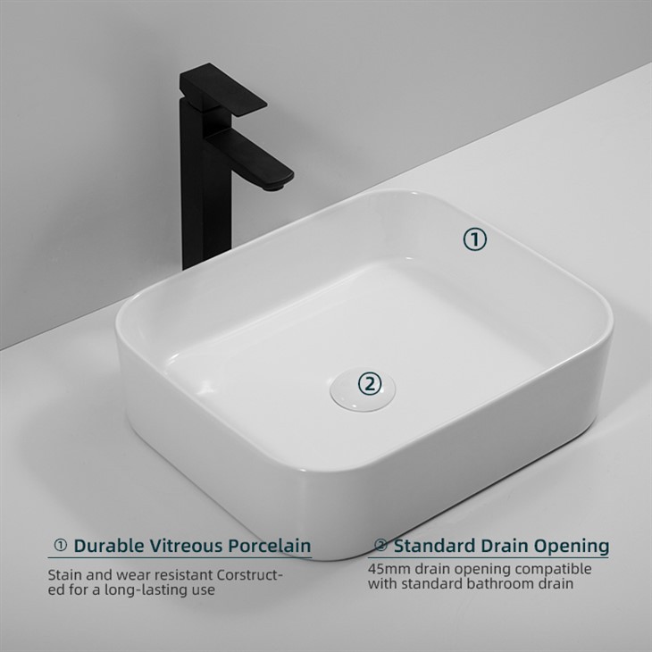 This counter top bathroom sinks combines exquisite craftsmanship with a stylish design. Made from high-quality ceramic, it features a smooth, non-porous surface that resists stains effectively and ensures easy cleaning. Its unique shape adds artistic charm to various bathroom styles, from modern minimalist to retro European, seamlessly blending practicality and luxury.